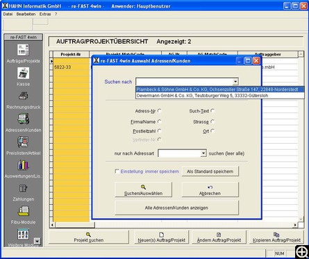 Screenshots unserer re-FAST 4win Lösung. U.a. von den Modulen Kundenverwaltung, Artikelverwaltung, Buchungen, OpenPlot-Schnittstelle uvm.